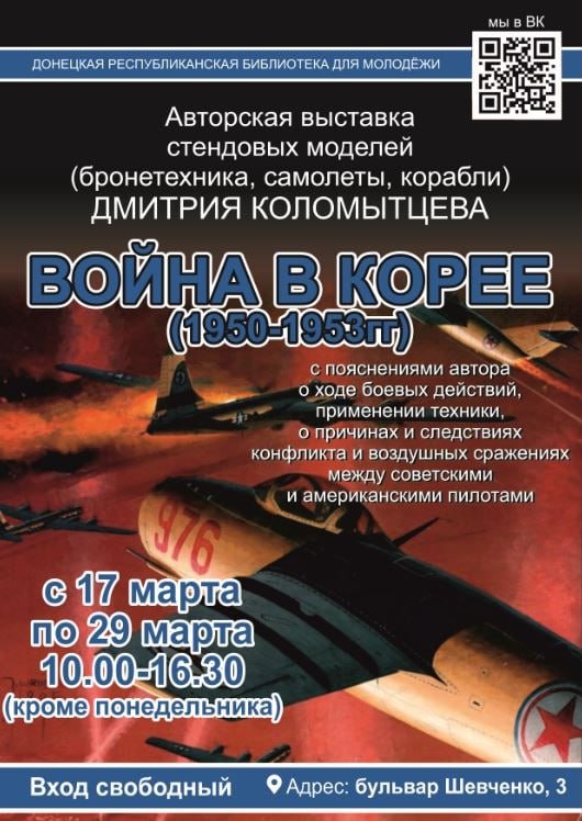 17 марта в Донецкой республиканской библиотеке для молодежи начала работу выставка стендовых моделей моделиста-реконструктора Дмитрия Коломытцева «Война в Корее (1950-1953 гг.)».