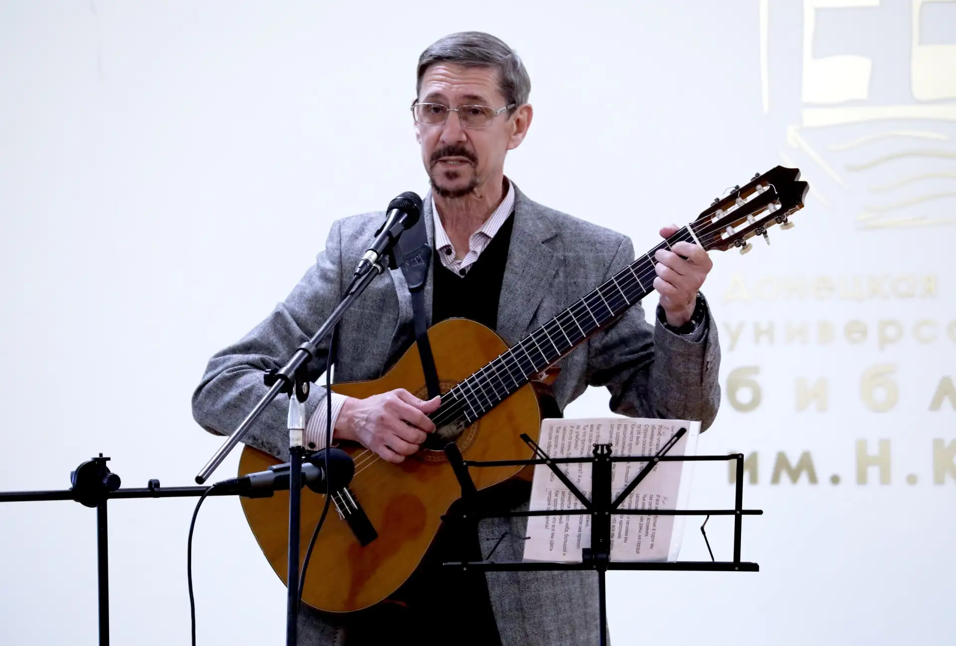 Музыкально-поэтическое представление, посвященное творчеству народного артиста Российской Федерации, известного автора-исполнителя Олега Митяева к его 70-летию, прошло в Донецкой республиканской универсальной научной библиотеке имени Н.К. Крупской.