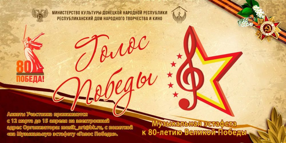 К участию приглашаем солистов и ансамбли Донецкой Народной Республики!В исполняемой вокальной композиции должна быть отражена история округа или населенного пункта, связанная с Великой Отечественной войной, события освобождения от немецко-фашистских...