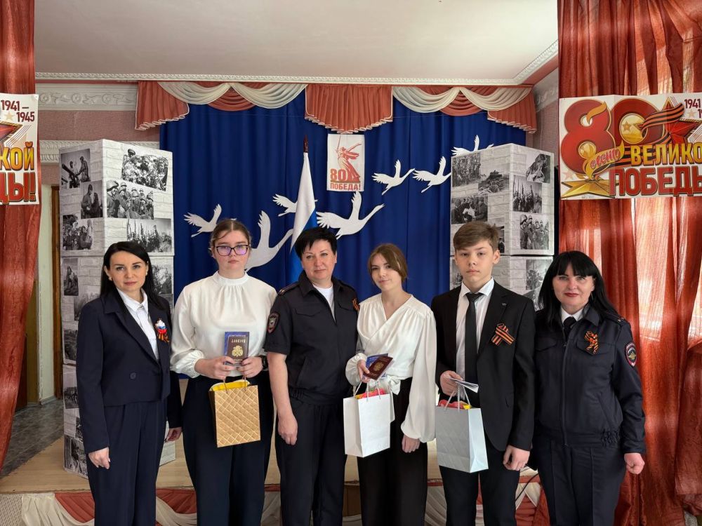 В преддверии празднования 80-летия Победы в Великой Отечественной войне сотрудники отдела по вопросам миграции ОМВД России «Новоазовский» в торжественной обстановке вручили первый документ гражданам, достигшим 14-летнего возраста.