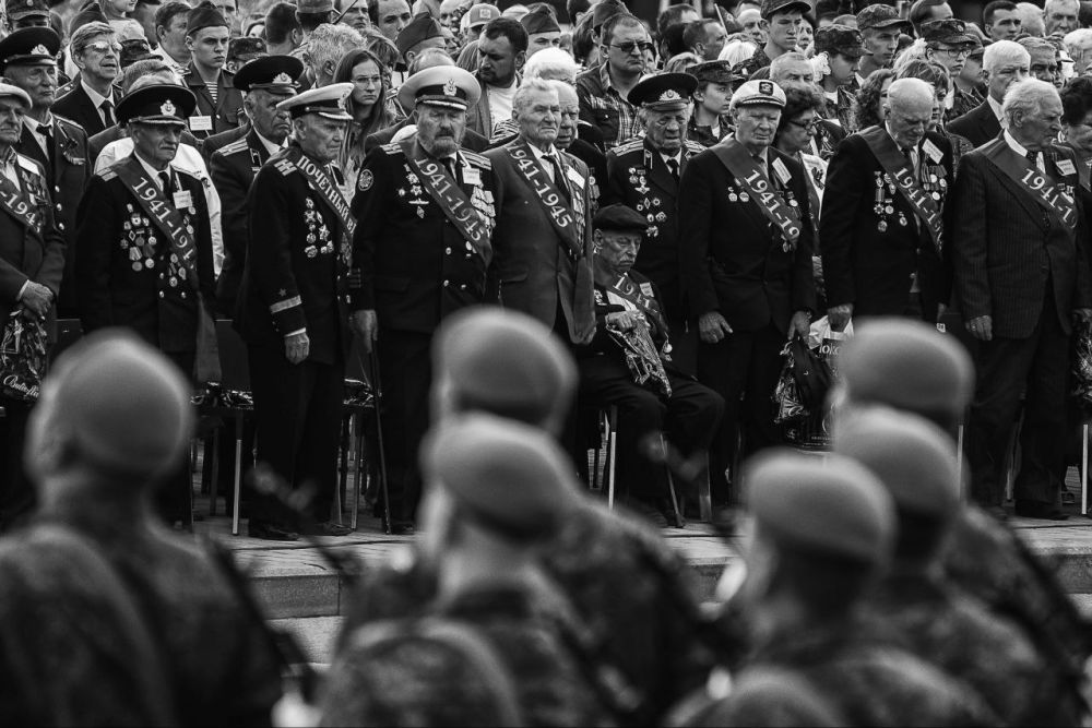 Ветераны Великой Отечественной войны на военном параде Победы в Донецке во время минуты молчания по погибшим за годы ВОВ.