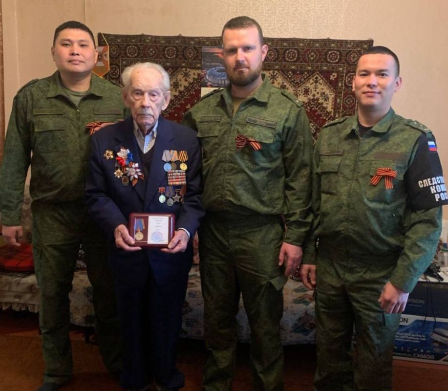 В день празднования Дня Победы сотрудники следственного управления СК России по Донецкой Народной Республике поздравили 35 ветеранов Великой Отечественной войны и тружеников тыла, проживающих в различных районах, вручив им памятные медали Следственного комитета Российской Федерации «80 лет Победы в Великой Отечественной войне 1941-1945 гг.»