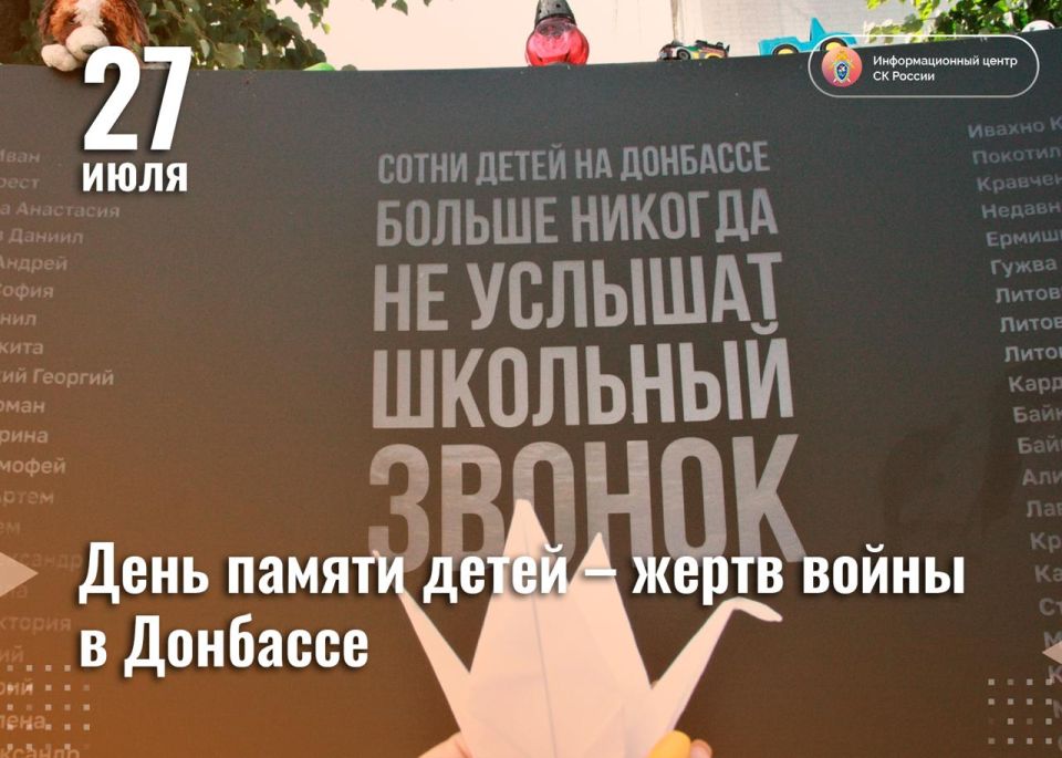 Сегодня, 27 июля, вся Россия разделяет скорбь Донбасса. Сегодня зажгутся миллионы свечей в память о невинных детях, ставших ангелами. Этот свет – не только скорбь по юным жизням, оборванным войной, это надежда на справедливость, на восстановление мира на истерзанной земле.