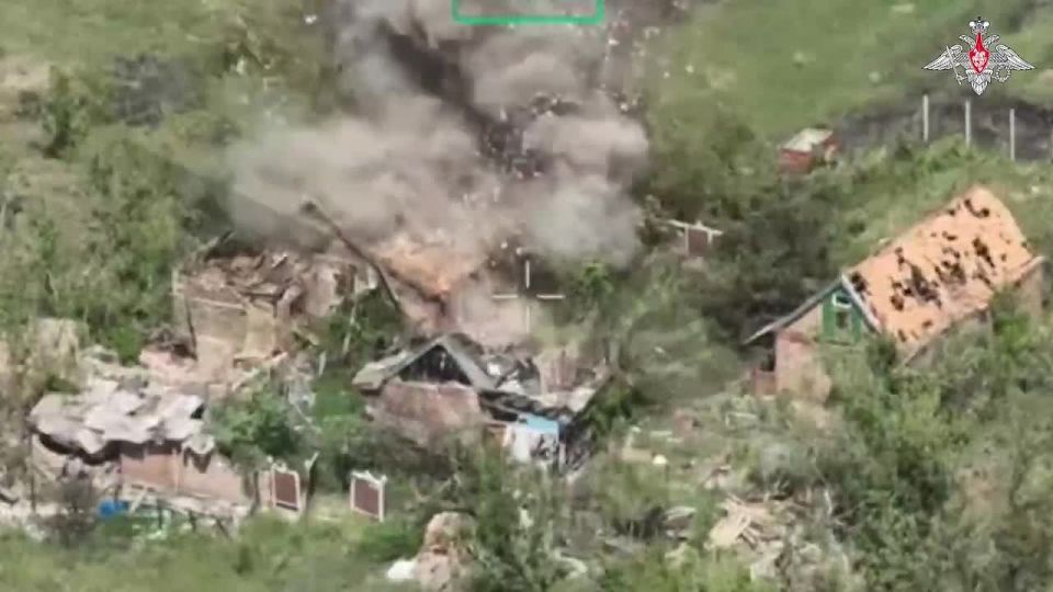 00:00 Разрушение пункта управления БПЛА дальнего действия ВСУ с применением дрона «Герань-2» и барражирующего боеприпаса «Ланцет» в районе населенного пункта Жадово Сумской области.