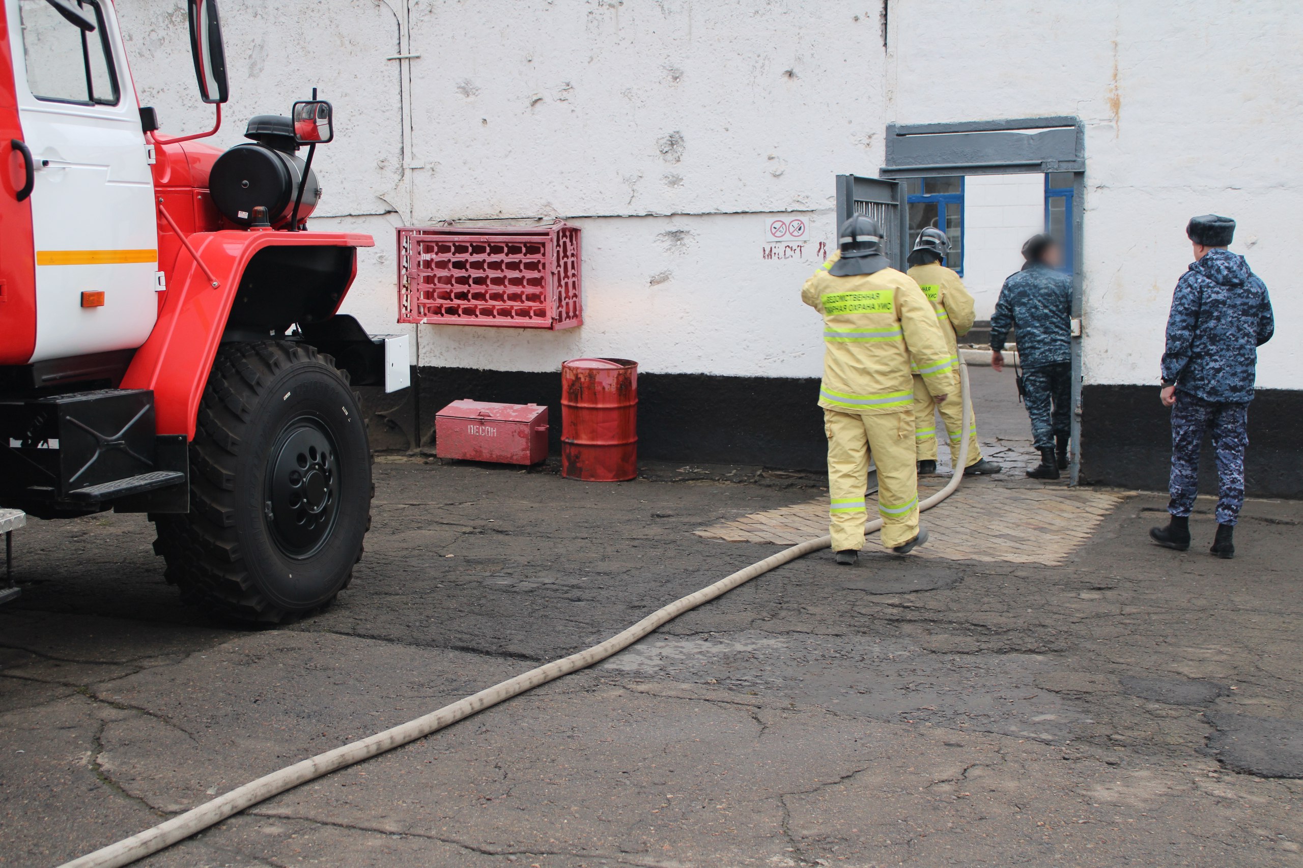 В ходе занятий сотрудники учреждения отработали алгоритм действий по своевременному реагированию на очаг возгорания, оповещению и эвакуации осужденных, также особое внимание было уделено организации эффективного взаимодействия между подразделениями. Согласно вводной были проведены мероприятия по эвакуации осужденных, проверке помещений отряда, обнаружению условного очага возгорания. В рамках занятий персоналом учреждения применялись первичные средства пожаротушения и использовалась пожарная техника — пожарный автомобиль АЦ 4,0–60 на шасси УРАЛ-43206 – с отработкой подачи огнетушащих средств в условиях, приближенных к реальным.
