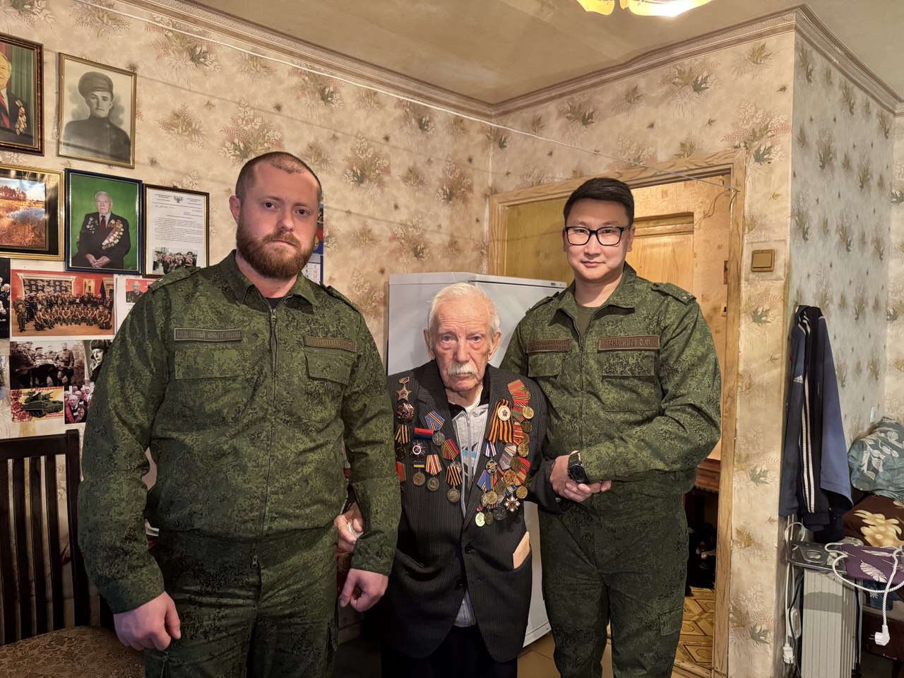 Сотрудники следственного управления СК России по Донецкой Народной Республике навестили и поздравили с 98-летием ветерана Великой Отечественной войны Румянцева Иннокентия Пантелеймоновича