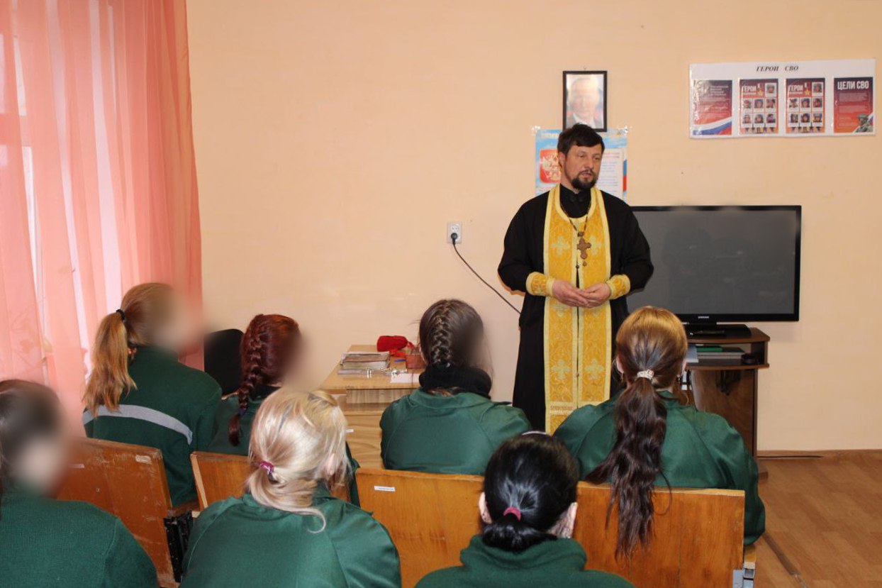 Сотрудники отдела воспитательной работы ИК-10 ГУФСИН России по Донецкой Народной Республике организовали для осужденных женщин, содержащихся в учреждении, встречу со священнослужителем, который провел мероприятие, направленное на духовно-нравственное воспитание осужденных.