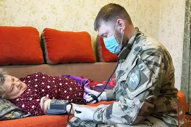 Военнослужащие Росгвардии, выполняющие задачи в Донецкой Народной Республике, оказали медицинскую помощь пенсионерке из отдаленного населенного пункта. К патрулю обратилась взволнованная девушка с просьбой помочь ее матери, у которой резко ухудшилось самочувствие. Росгвардейцы связались со скорой, а из подразделения срочно выехал медбрат старший сержант Сергей А.