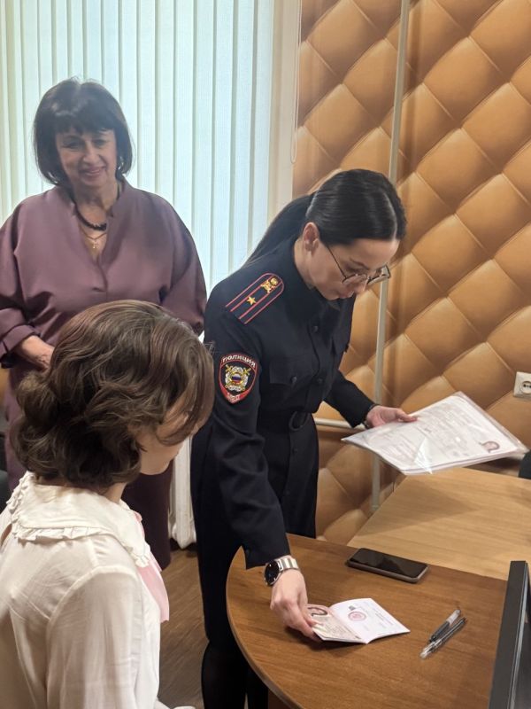 В отделении по вопросам миграции отдела полиции по обслуживанию Киевского района Донецка состоялось торжественное вручение паспорта гражданина Российской Федерации 14-летним ребятам.Начальник отделения по вопросам миграции Киевского отдела полиции...