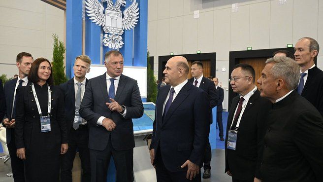 Осмотр выставки форума «Развитие малых городов и исторических поселений». С Заместителем Председателя Правительства Маратом Хуснуллиным, Министром строительства и жилищно-коммунального хозяйства Ирэком Файзуллиным, главой Татарстана Рустэмом...