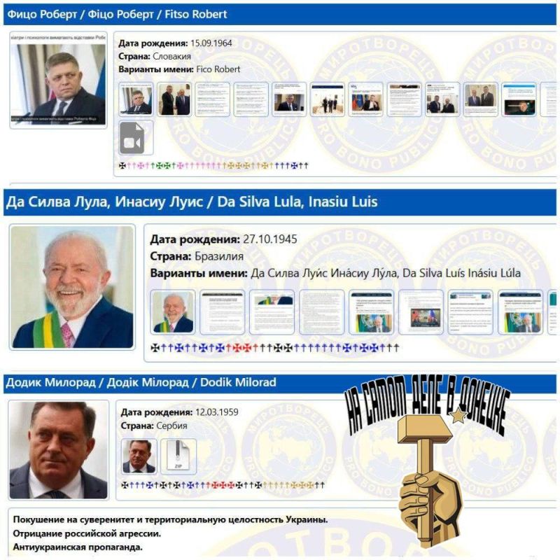 Роберт Фицо, Лула да Силва и Милорад Додик внесены в список украинского экстремистского сайта «Миротворца».