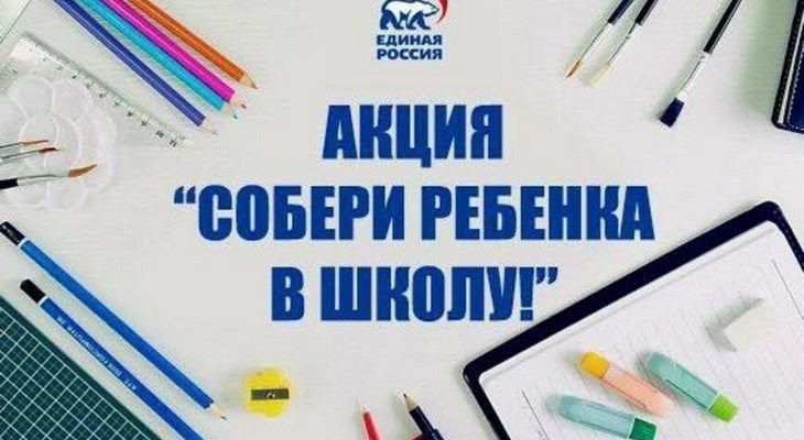 Всероссийская акция «Собери ребенка в школу» проводится ежегодно Партией «ЕДИНАЯ РОССИЯ» и нацелена на обеспечение школьными принадлежностями детей из малообеспеченных семей.