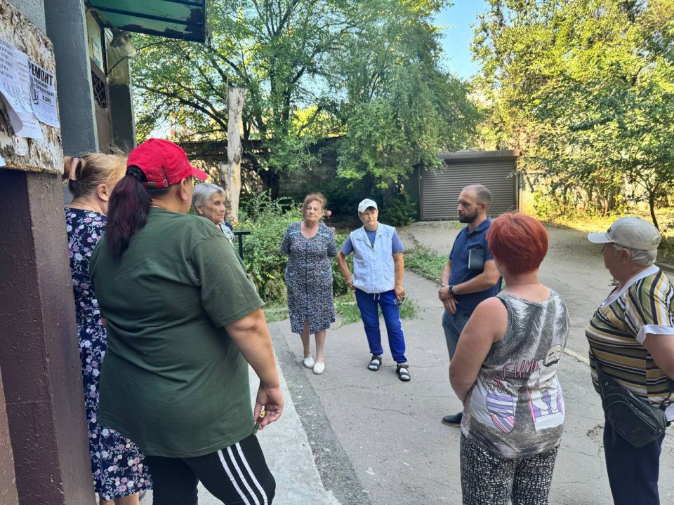 По поручению Главы ДНР Дениса Пушилина 31.07.2025 по адресу: г. Донецк, ул. Стадионная, д. 20б состоялась встреча с жителями района, на которой присутствовал первый заместитель руководителя Управы Ленинского внутригородского района Александр Банах.