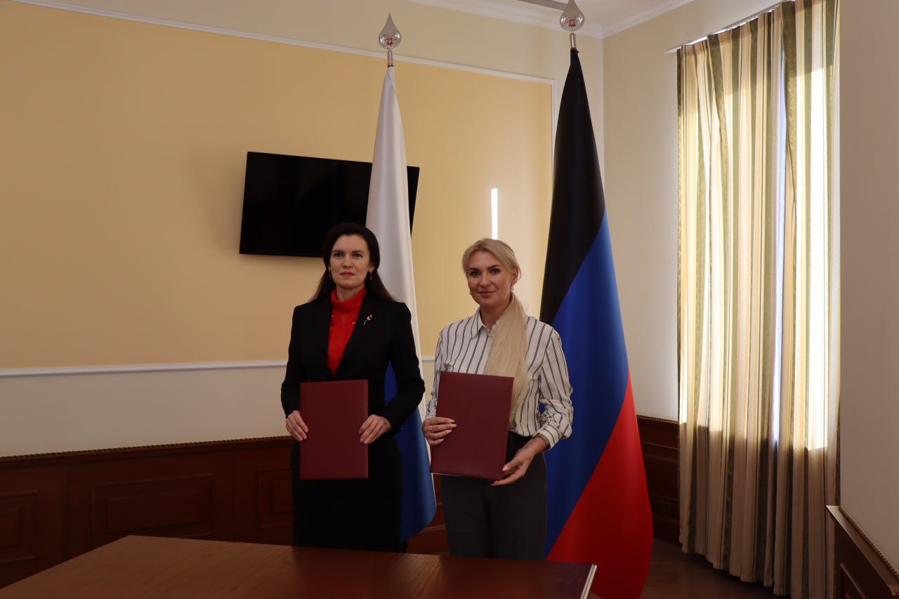 Свои подписи под соглашением поставили руководитель Представительства МИД России в г. Донецке Татьяна Сергеевна Михайлова и Уполномоченный по правам человека в Донецкой Народной Республике Дарья Васильевна Морозова.