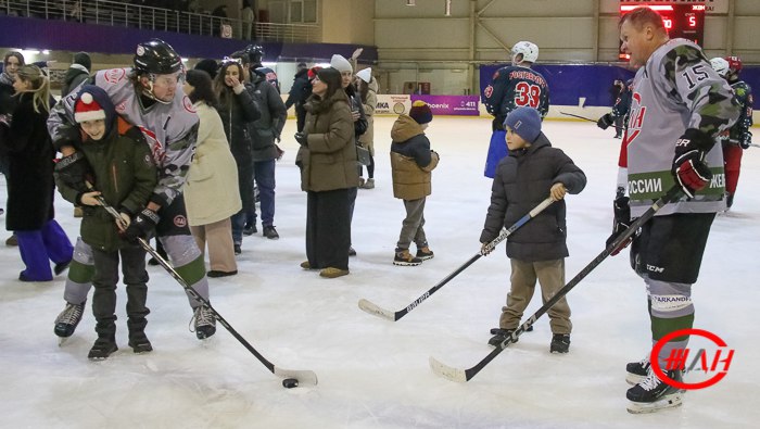 В преддверии новогодних праздников в Донецком ледовом дворце «Алмаз» состоялся благотворительный матч «Хоккей каждому». Вечером 25 декабря на льду встретились команды ХК «Железные дороги Новороссии» и ХК «Наши».