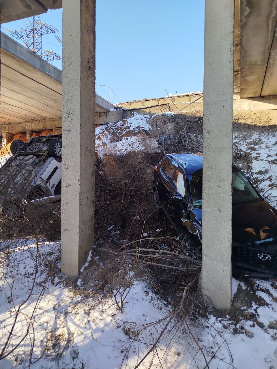 Вчера под недостроенный мост у Донецка рухнули две машины