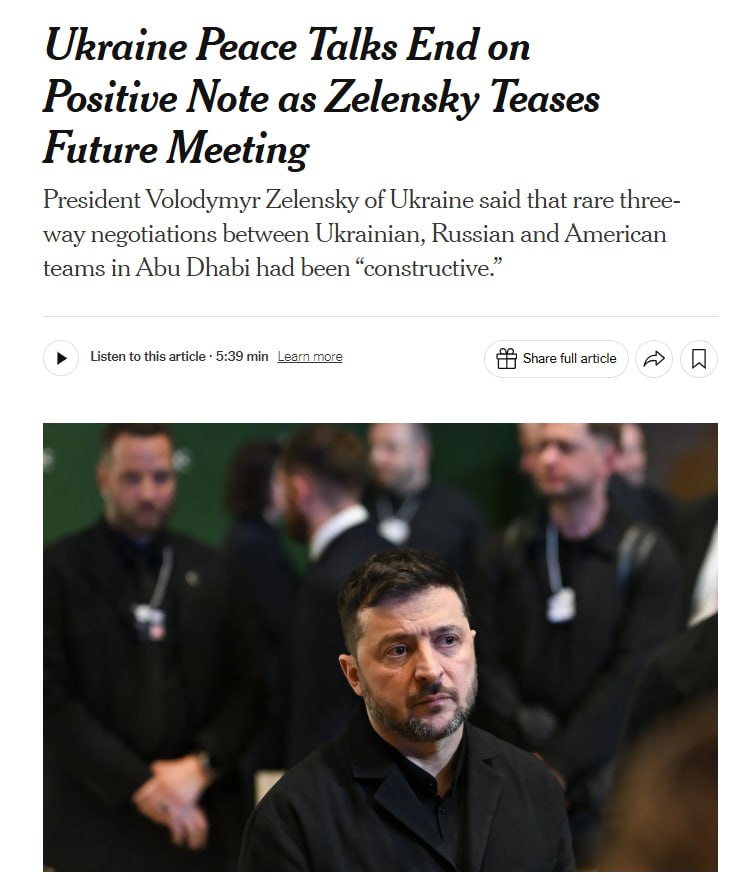 По словам издания, на переговорах в ОАЭ американские и украинские делегации обсуждали возможное размещение нейтральных сил в качестве миротворцев в части Донецкой области или формирование демилитаризованной зоны.