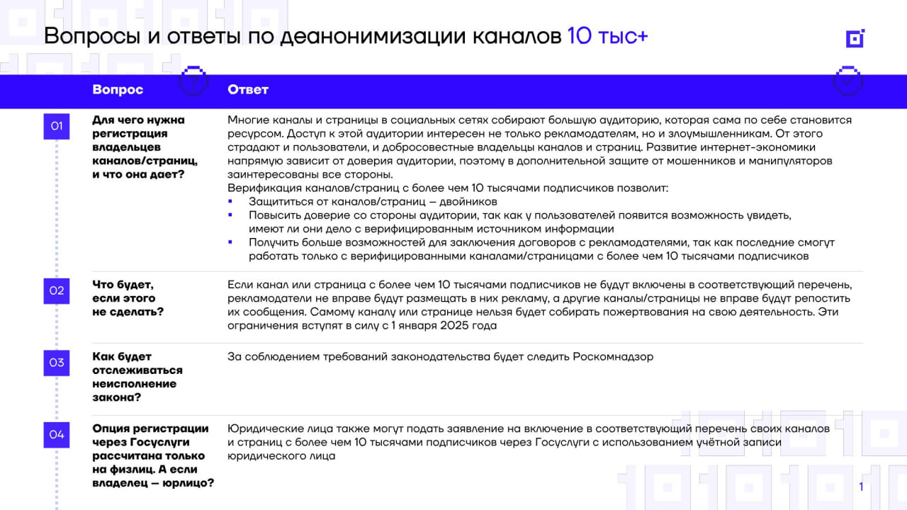 Минцифры России подготовило ответы на частые вопросы владельцев каналов и страниц. Смотрите в карточках.
