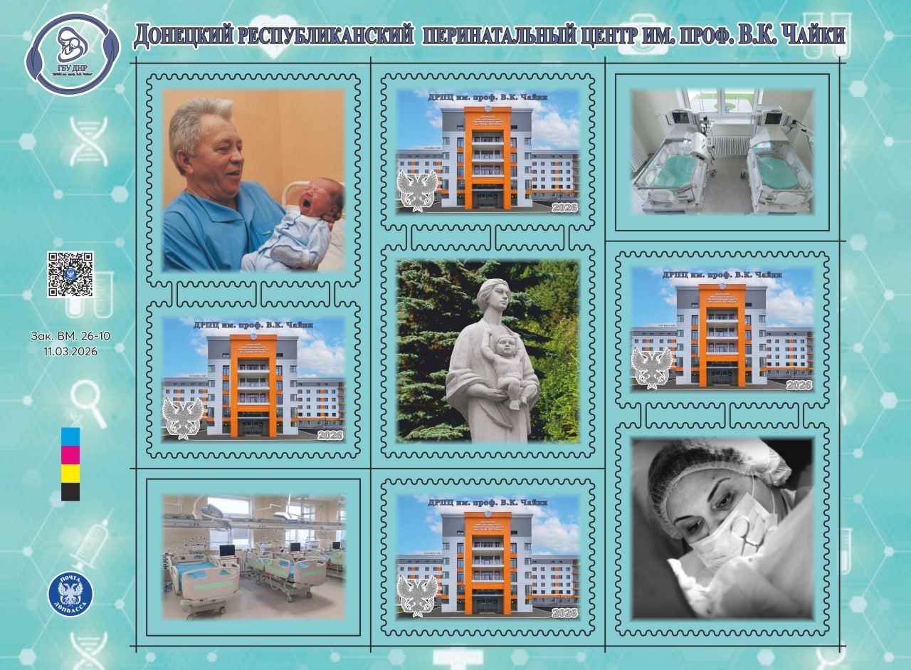 «Почта Донбасса» выпустила новый филателистический блок, посвященный 2-летию Донецкого республиканского перинатального центра им. проф. В.К. Чайки.