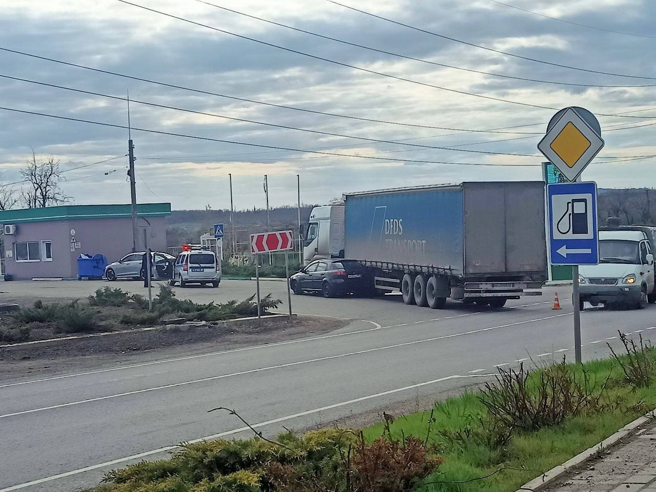 Широченный заезд на АЗС не поделили грузовик и легковушка в Харцызске