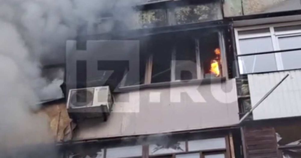 Последствия обстрела по Донецку — по городу было выпущено 7 ракет из РЗСО Стена в одном из домов пробита насквозь, на месте работают спасатели.: корреспондент "Известий" Евгений БыковскийПодписаться на РЕН ТВ
