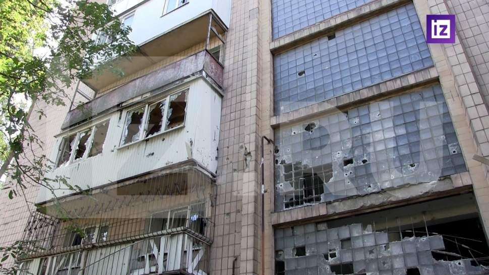Украинские боевики нанесли удар по Калининском району Донецку. Кадры последствий обстрела со стороны ВСУ показал корреспондент "Известий" Евгений Быковский. "Одно из мест прилета...