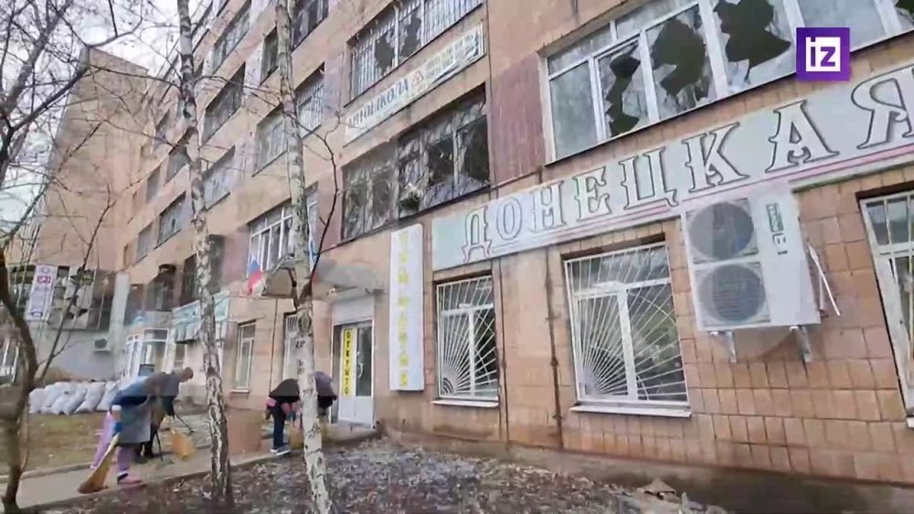 РЕН ТВ публикует кадры последствий атаки ВСУ Донецк. Выпущенная боевиками ракета Storm Shadow упала рядом с рынком "Сокол". В результате преступных действий ВСУ погибла женщина, еще три человека ранены осколками.Как передает корреспондент "Известий"...