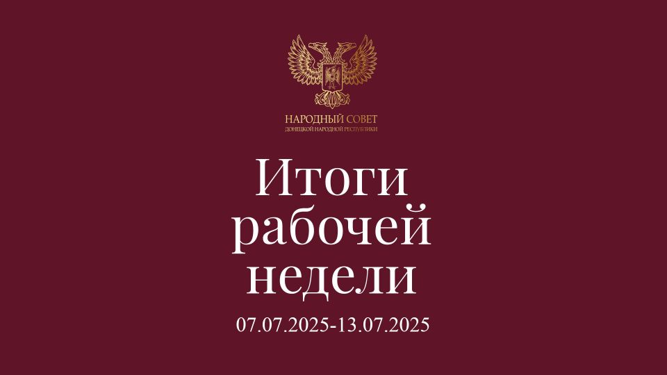 Итоги работы Народного Совета Донецкой Народной Республики с 23 июня по 7 июля 2025 года.