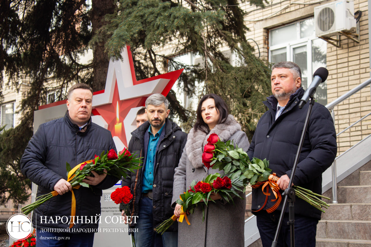 В преддверии Дня защитника Отечества у стелы памяти сотрудников «Донбасстеплоэнерго» состоялось памятное мероприятие. Председатель Народного Совета ДНР Константин Кузьмин и председатель Комитета Народного Совета по ЖКХ Анна Кондрыкинская почтили память сотрудников предприятия погибших в боевых действиях и при исполнении трудовых обязанностей.