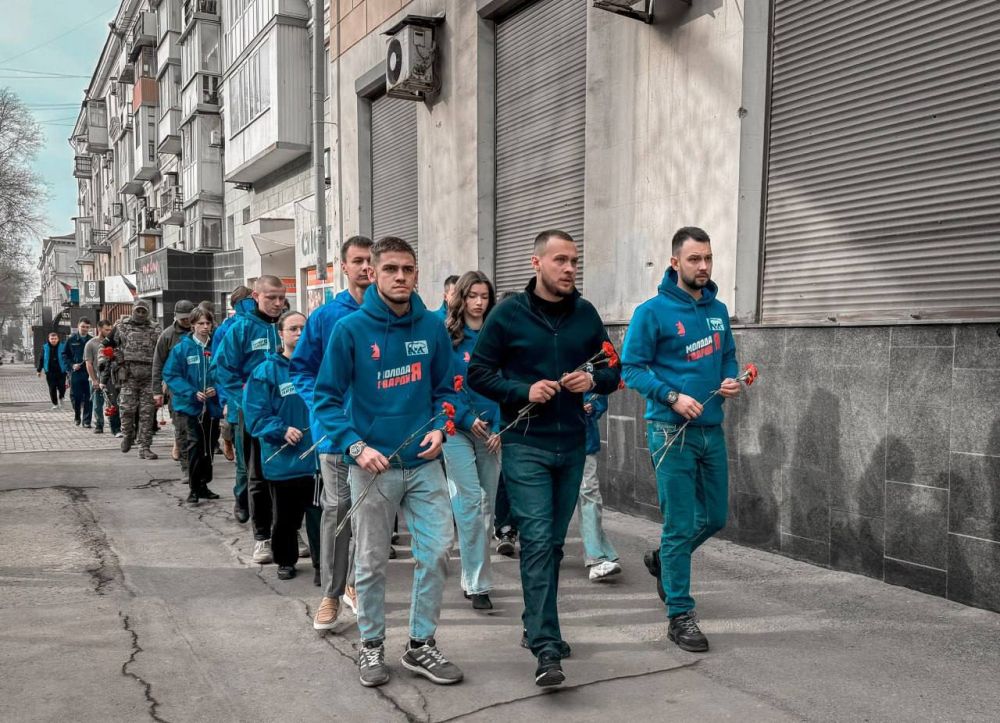 Молодёжь Донбасса возложила цветы к месту трагедии в Донецке