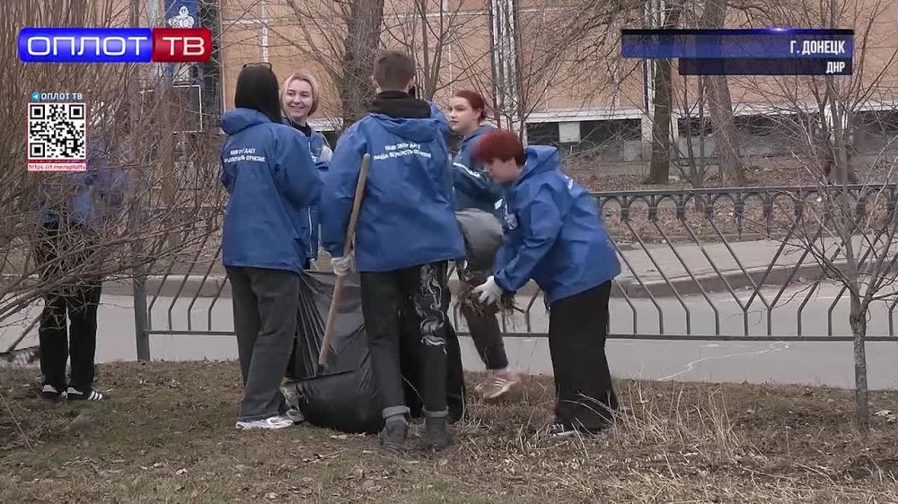 Тысячи жителей выходят приложить руку к облагораживанию муниципалитетов. Активно участвуют в этом и волонтёры из молодёжных движений. Так, в каждом районе Донецка работают ребята из Молодой Республики и Молодой Гвардии Единой России. Одна из точек – новый перинатальный центр.