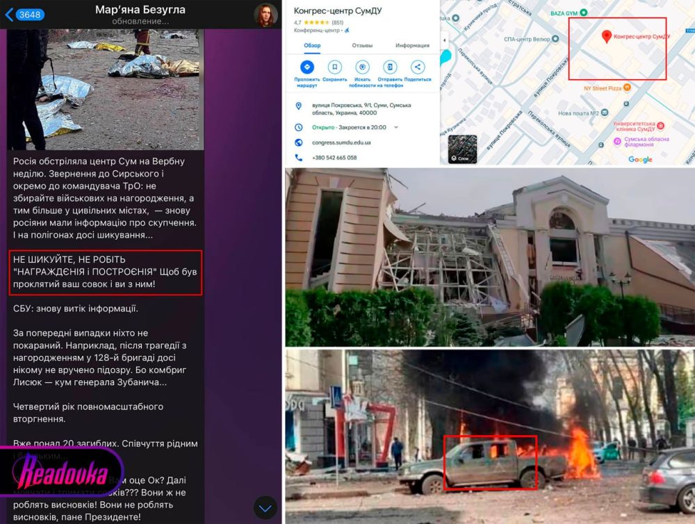Читаю комментарии к новости о том, что при ударе по Сумам, где проводили награждение украинских военных (это даже депутат Рады Марьяна Безуглая подтверждает) погибли и гражданские тоже.