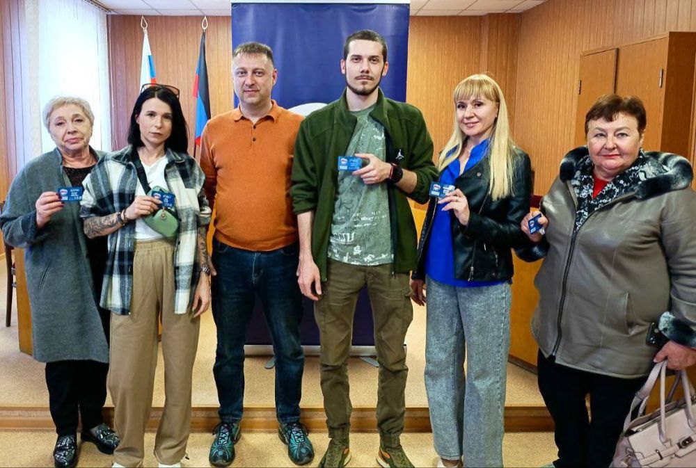 Заместитель руководителя Управы Буденновского внутригородского района Администрации городского округа Донецк Геннадий Хоменок вручил партийные билеты и нагрудные значки партии «Единая Россия».