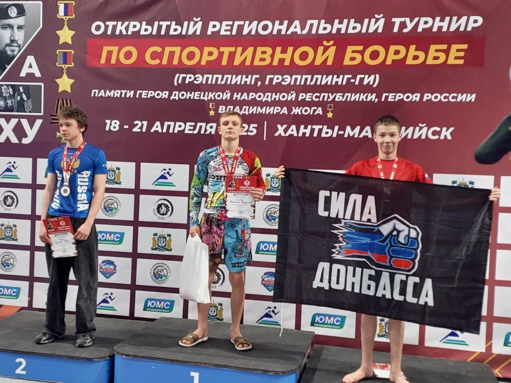 Поздравляем с новой победой учащегося школы №112, 8-В класса Москалюка Владислава! Первое место на открытом региональном турнире по спортивной борьбе памяти Героя Донецкой народной республики и Героя России Владимира Жоги, проходившем в городе Ханты-Мансийск с 18 по 21 апреля.