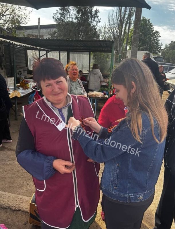 В преддверии 80-й годовщины Победы в Великой Отечественной войне в освобожденных населенных пунктах Спартак, Красногоровка и Великая Новосёлка раздавали георгиевские ленты и флажки.