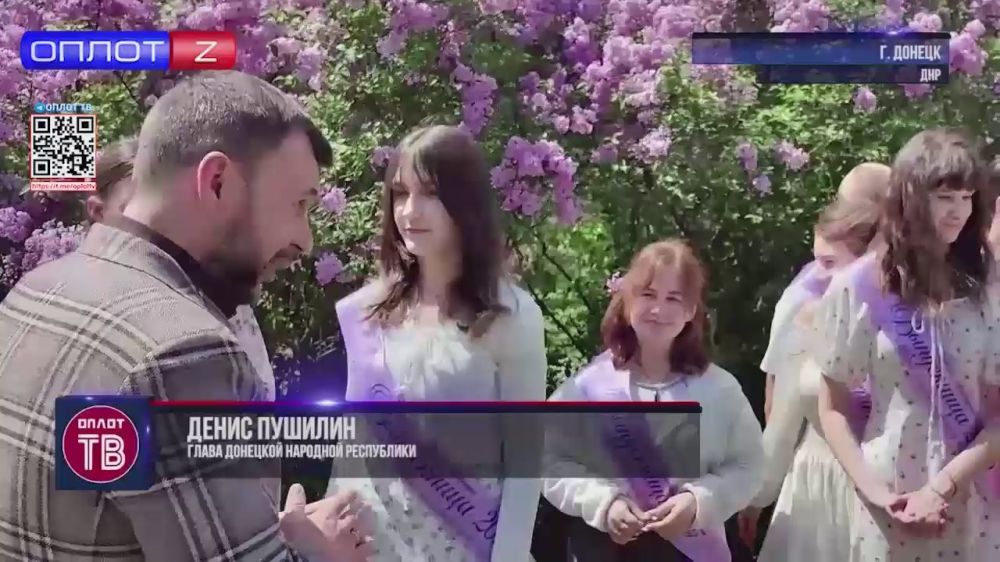 Денис Пушилин во время своего посещения Донецкого ботанического сада встретил выпускников школы