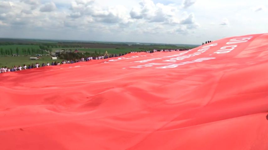 Во время торжества было развернуто самое большое в мире Знамя Победы. Его размер составил размером 65 на 35 метров.