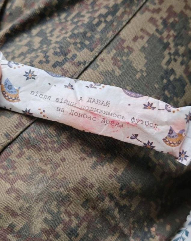 На разбитых позициях ВСУ наши бойцы нашли сахар с мотивационными надписями.