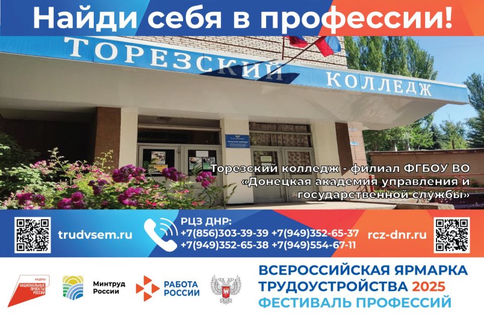 Торезский колледж(ВИДЕО) - филиал ФГБОУ ВО «Донецкая академия управления и государственной службы» - на базе 9-ти и 11-ти классов готовит по очной и заочной формам обучения специалистов по направлениям: