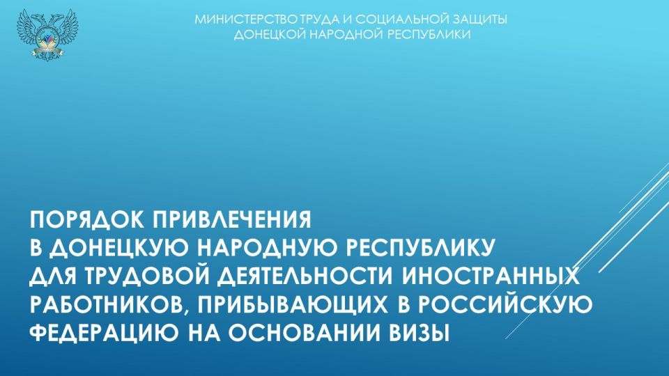О привлечении для трудовой деятельности в ДНР иностранных работников, прибывающих в РФ на основании визы