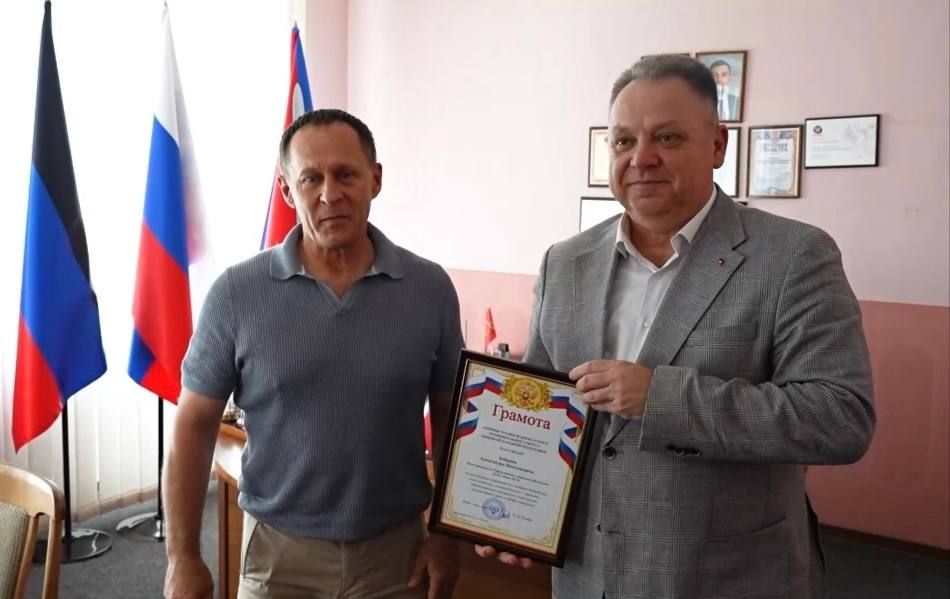 Награду вице-президенту - управляющему Донецким филиалом ПСБ Александру Бобрику вручил временно исполняющий полномочия главы Ясиноватского округа Александр Пеняев.