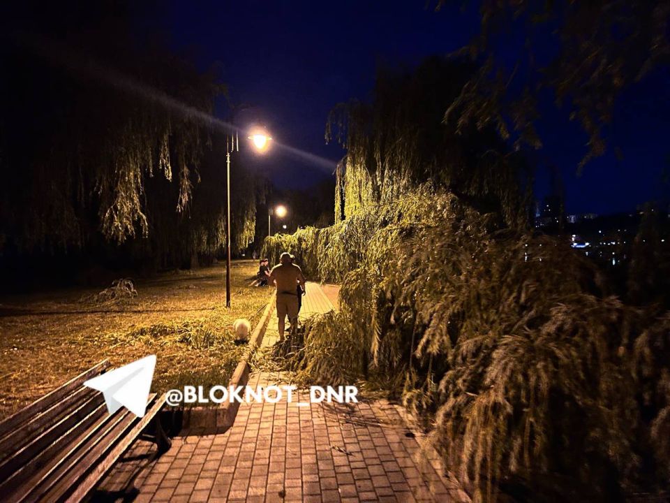 Последствия урагана на Набережной в Калининском районе Донецка