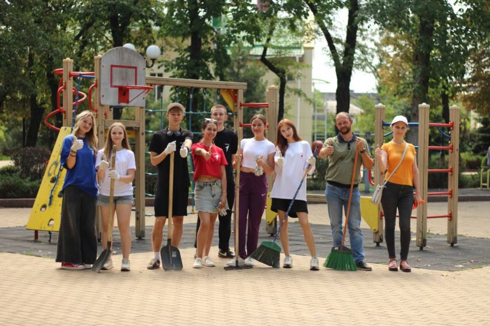 Сотрудники сектора по делам молодежи, культуры и спорта Управы Ленинского внутригородского района Администрации городского округа Донецк совместно с Донецким отделением "Движение Первых" провели масштабный субботник на детской площадке в Центре Славянской культуры.