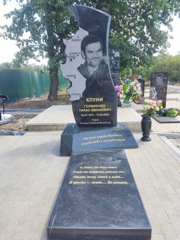 Герою ДНР Гордиенко Тарасу, которого мы все знаем по позывному "Клуни", был установлен памятник на могиле в Донецке. Начали этот процесс небезразличные граждане, которых по итогу поддержали местные власти.
