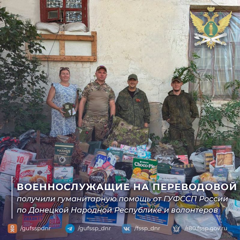 Сотрудники Главного управления Федеральной службы судебных приставов по Донецкой Народной Республике совместно с членом Общественной палаты ДНР Юлией Гончаровой — координатором международного волонтёрского движения «Москва — Донбасс» — организовали доставку гуманитарной помощи военнослужащим 110-й отдельной штурмовой бригады Вооружённых сил России.