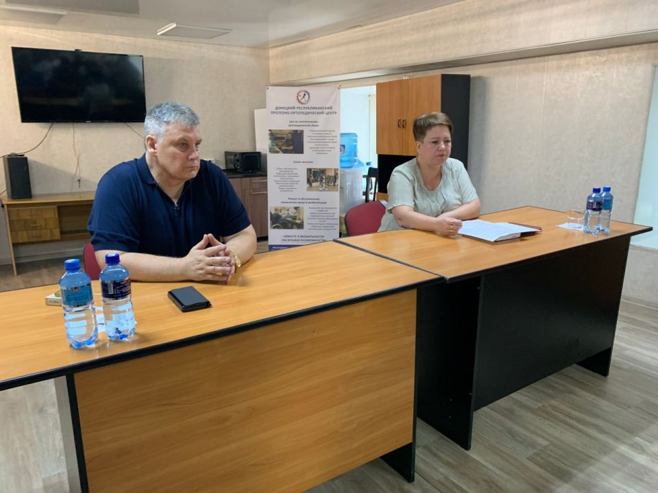 Депутат Юрий Покинтелица вместе с директором Департамента соцзащиты Минтруда ДНР Викторией Пикинер провели встречу с трудовым коллективом ГУП ДНР «Донецкий республиканский протезно-ортопедический центр».