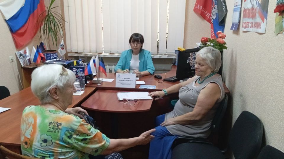 Сегодня, 31 июля, руководитель Управы Калининского внутригородского района Администрации городского округа Донецк Елена Синецкая провела приём граждан в общественной приёмной Всероссийской политической партии «Единая Россия».