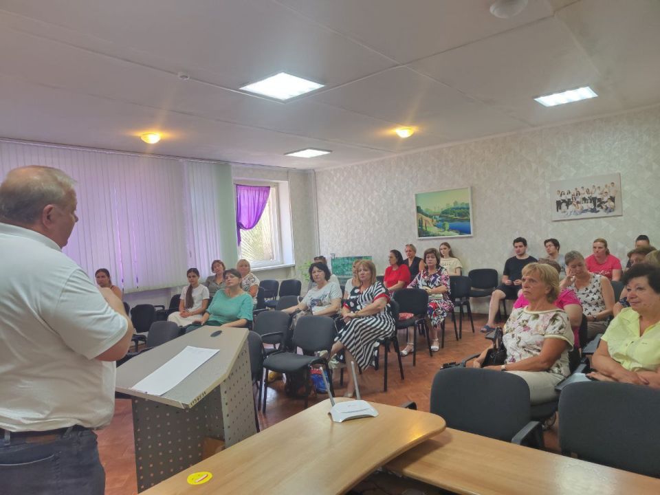 Сегодня, 01 августа 2025 года, по поручению Главы Республики Дениса Пушилина, в рамках проекта "Управдом", в Кировском районе г. Донецка прошла встреча с трудовым коллективом ГБОУ «ШКОЛА № 112 ГОРОДСКОГО ОКРУГА ДОНЕЦК» ДНР.