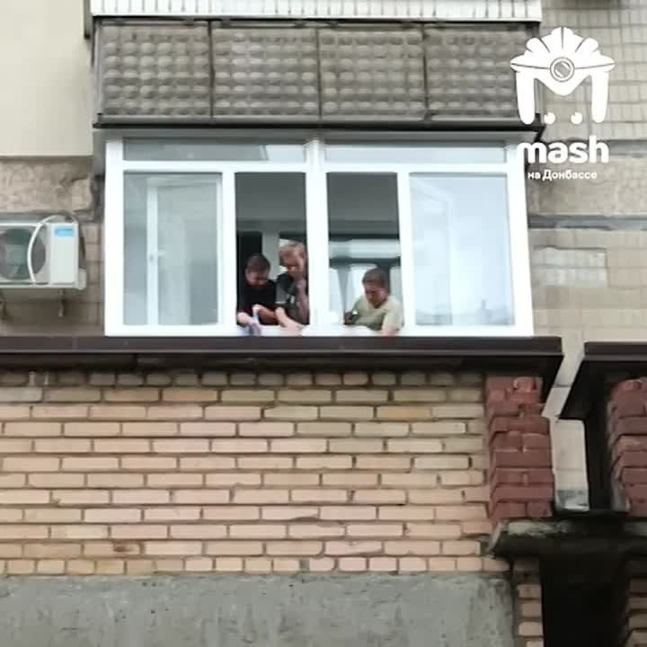 Хаски, застрявший в окне донецкой многоэтажки, упал на козырёк дома.