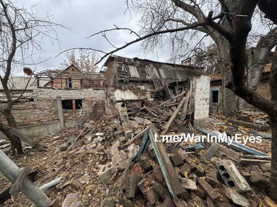 Последствия прилёта ударного БПЛА украинских террористов по частному жилому дому в Будённовском районе Донецка сегодня ночью